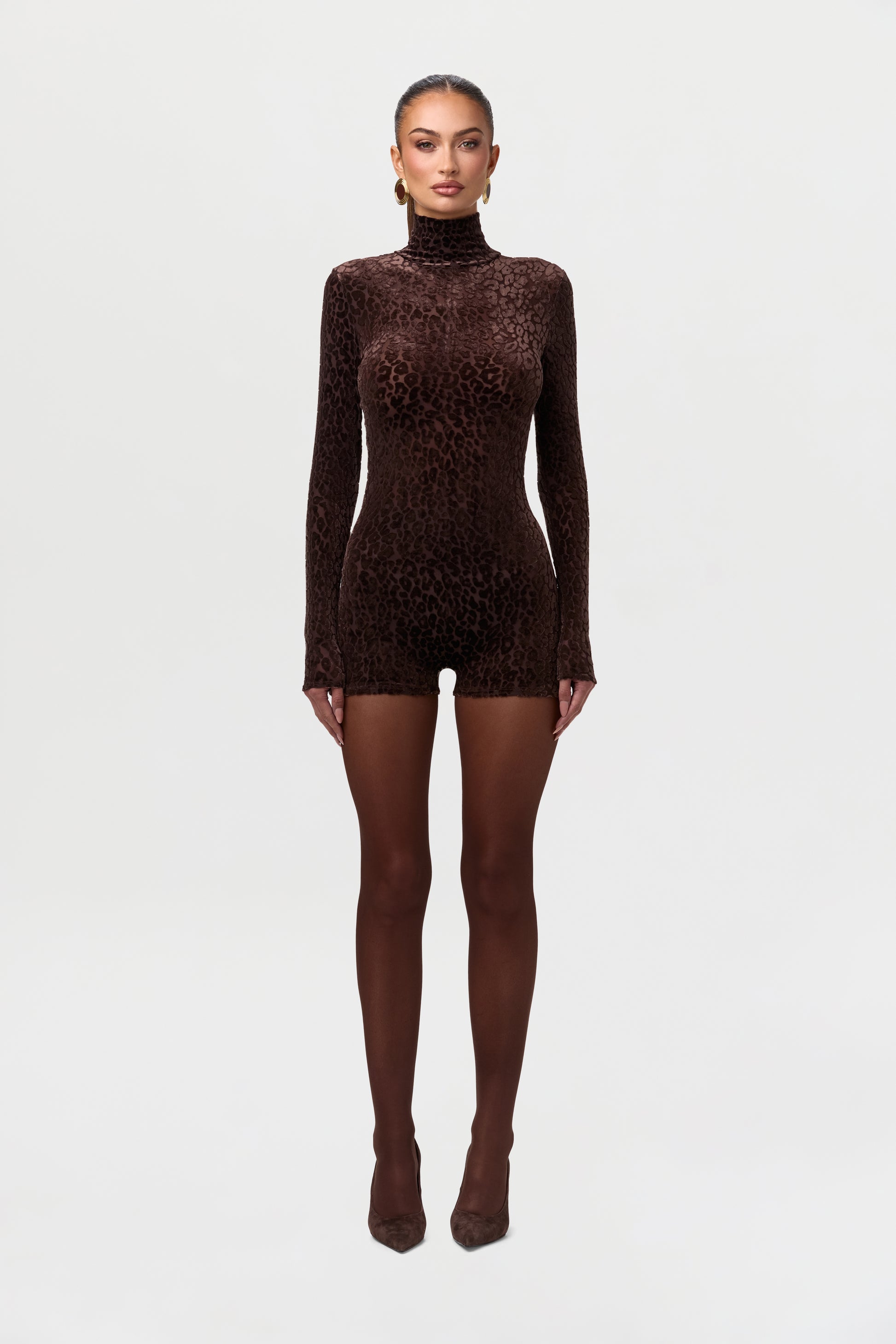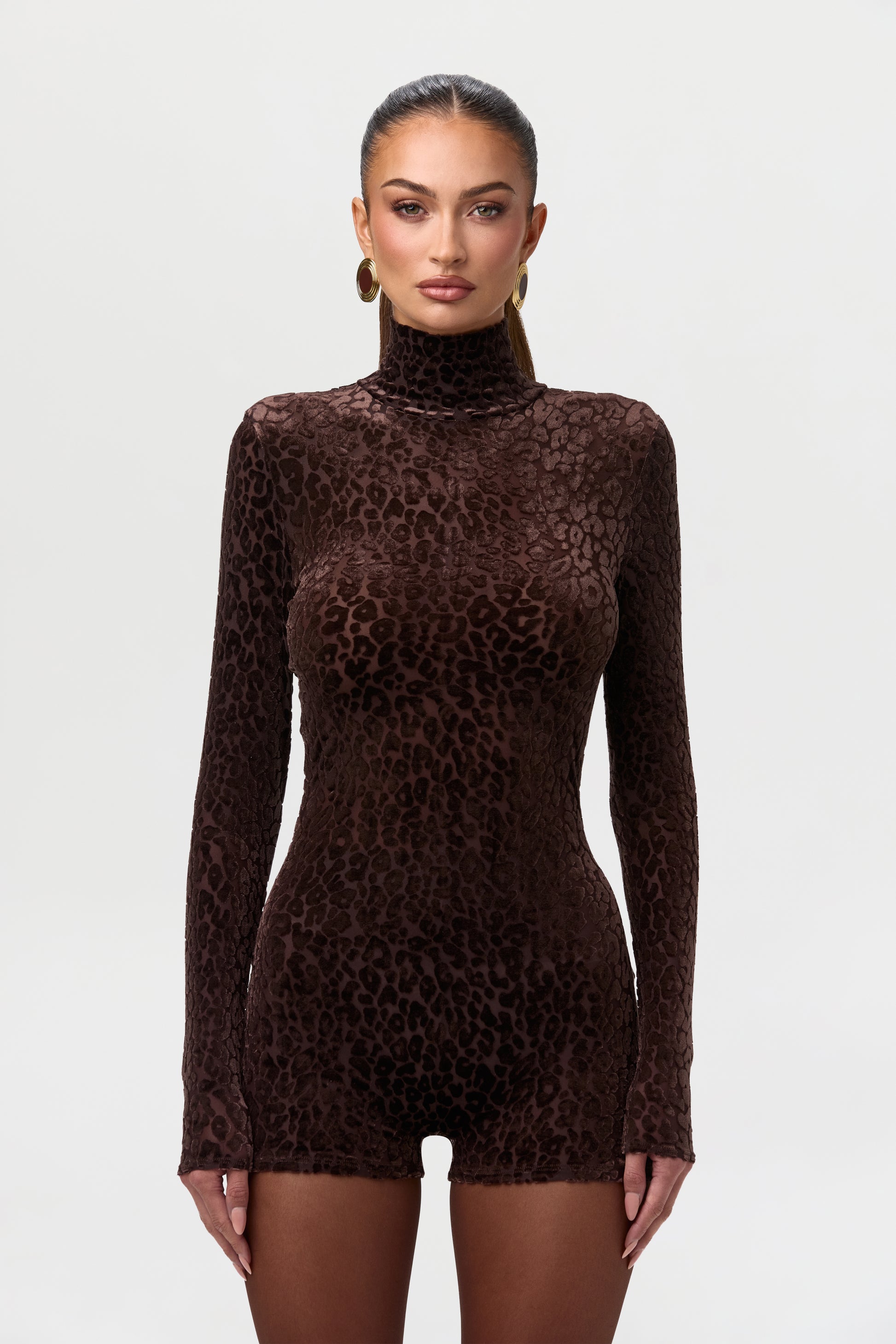 Burnout Print Turtleneck Romper