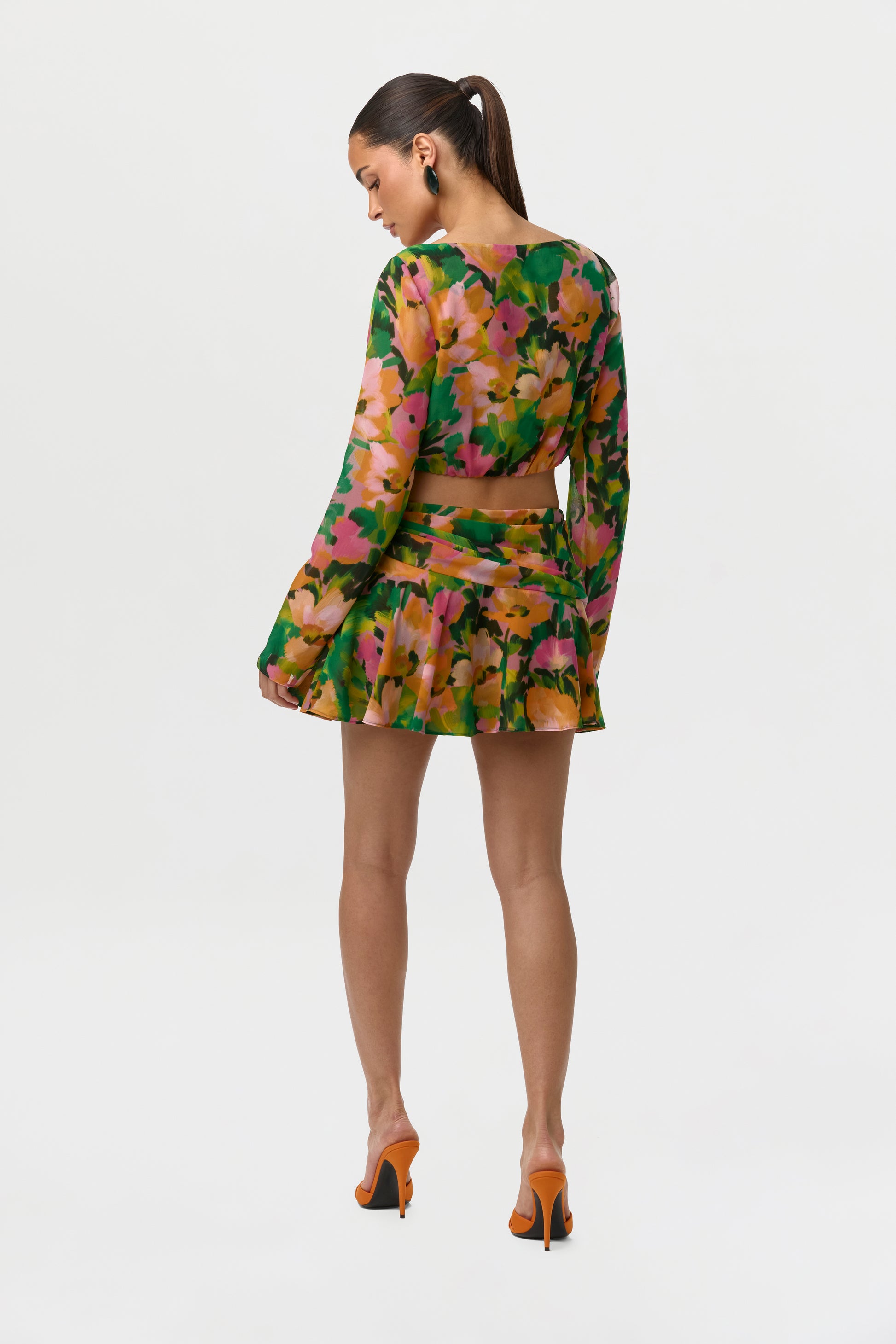 Chiffon Print Ruffle Mini Skirt
