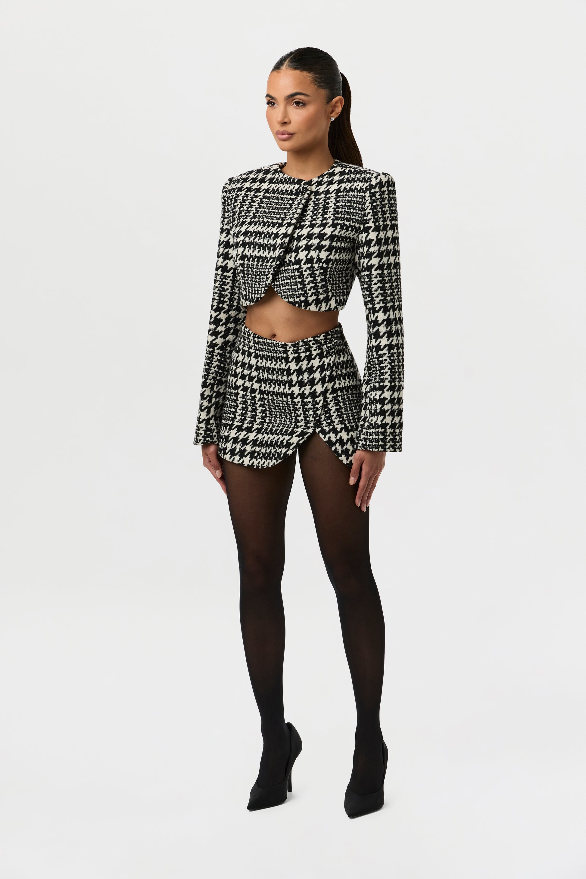 Houndstooth Plaid Mini Skirt
