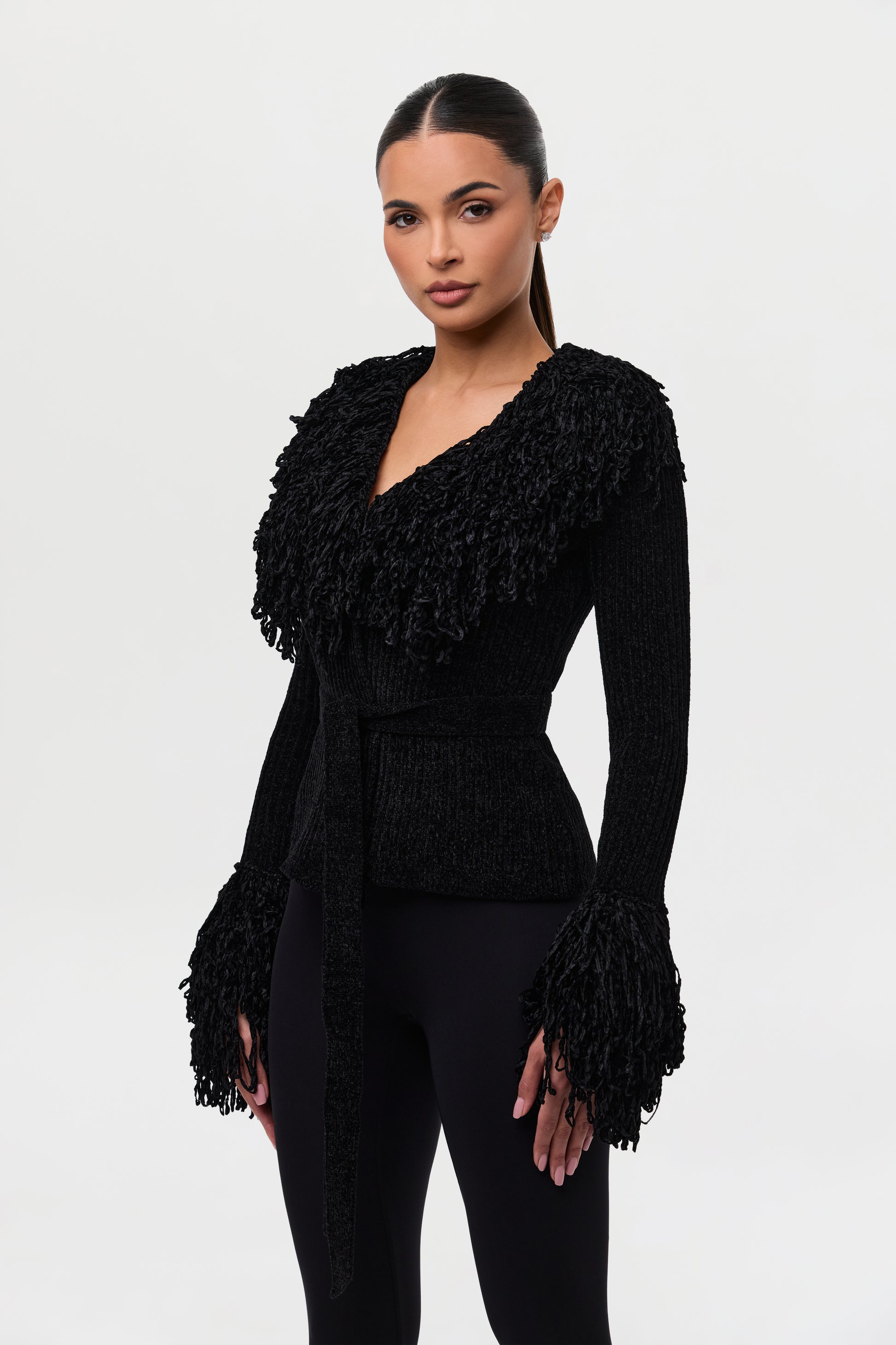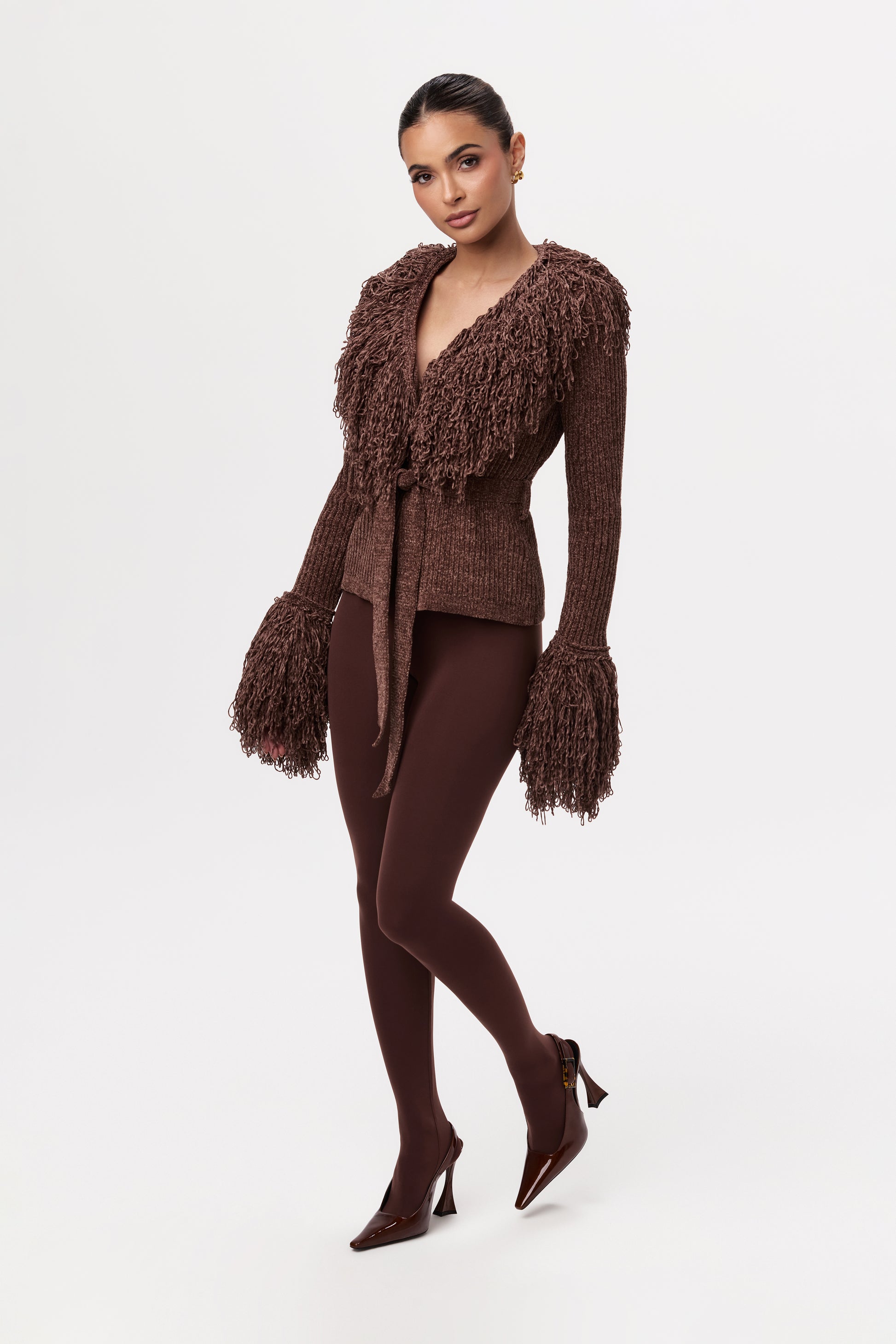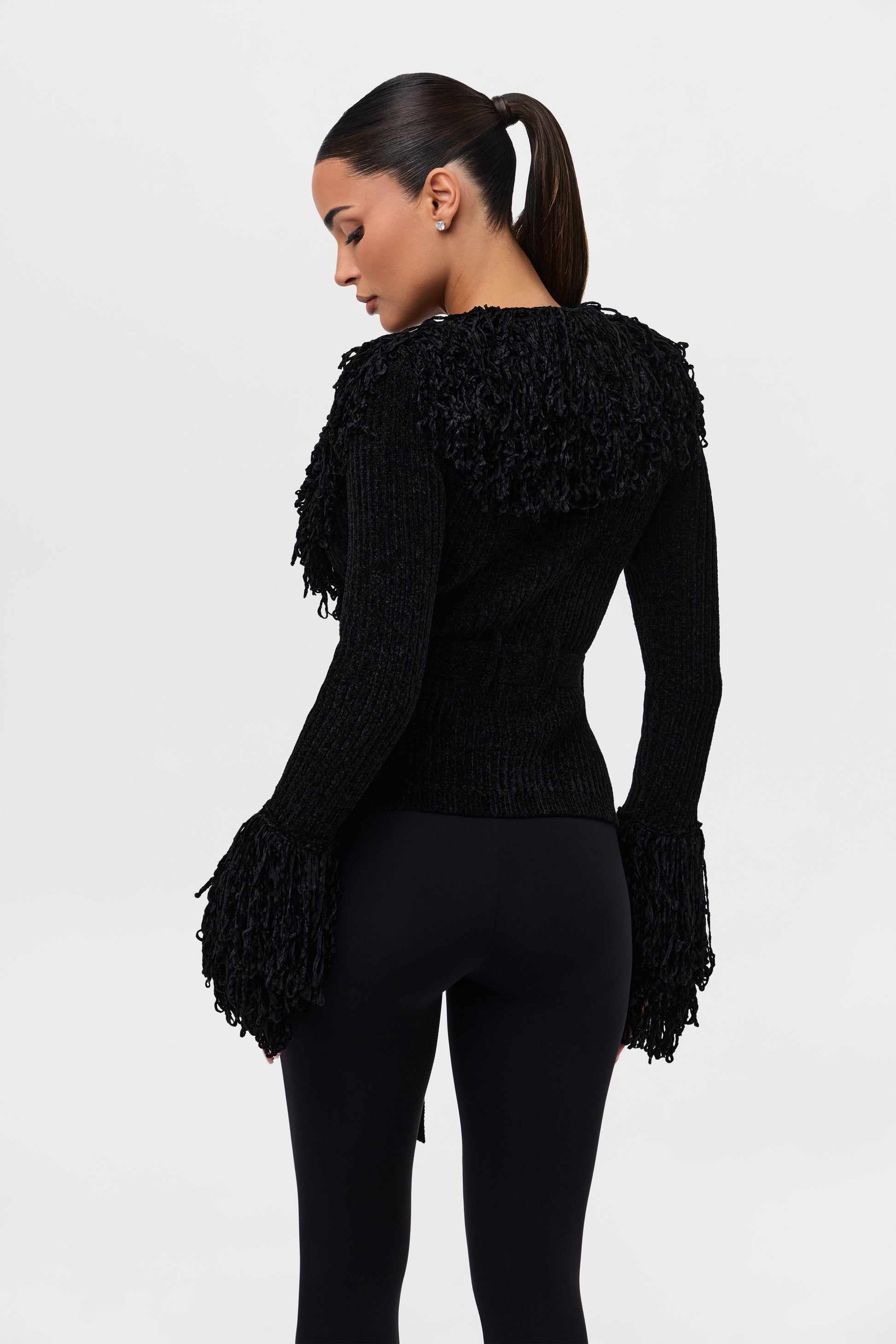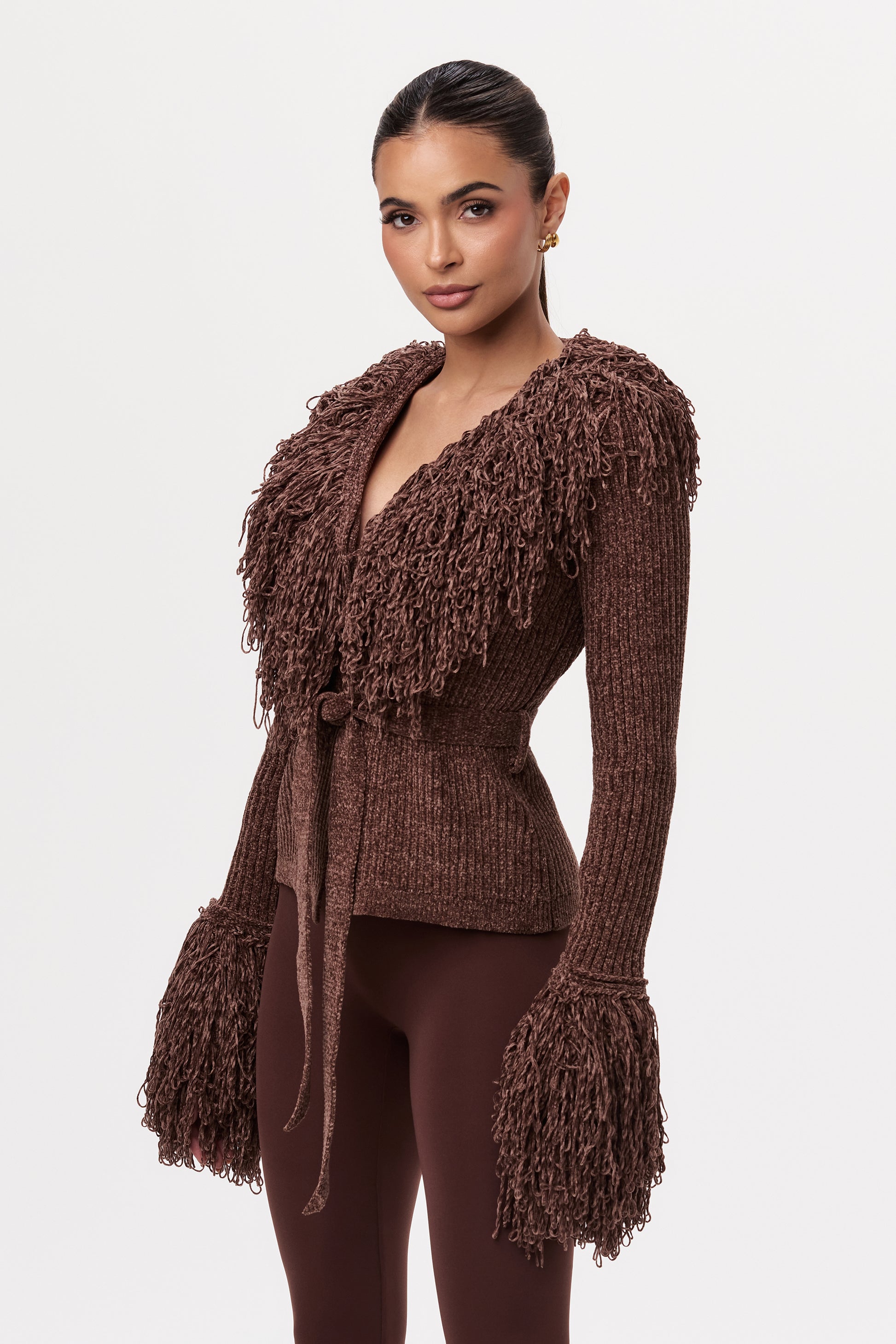 Knit Fringe V-Neck Cardigan