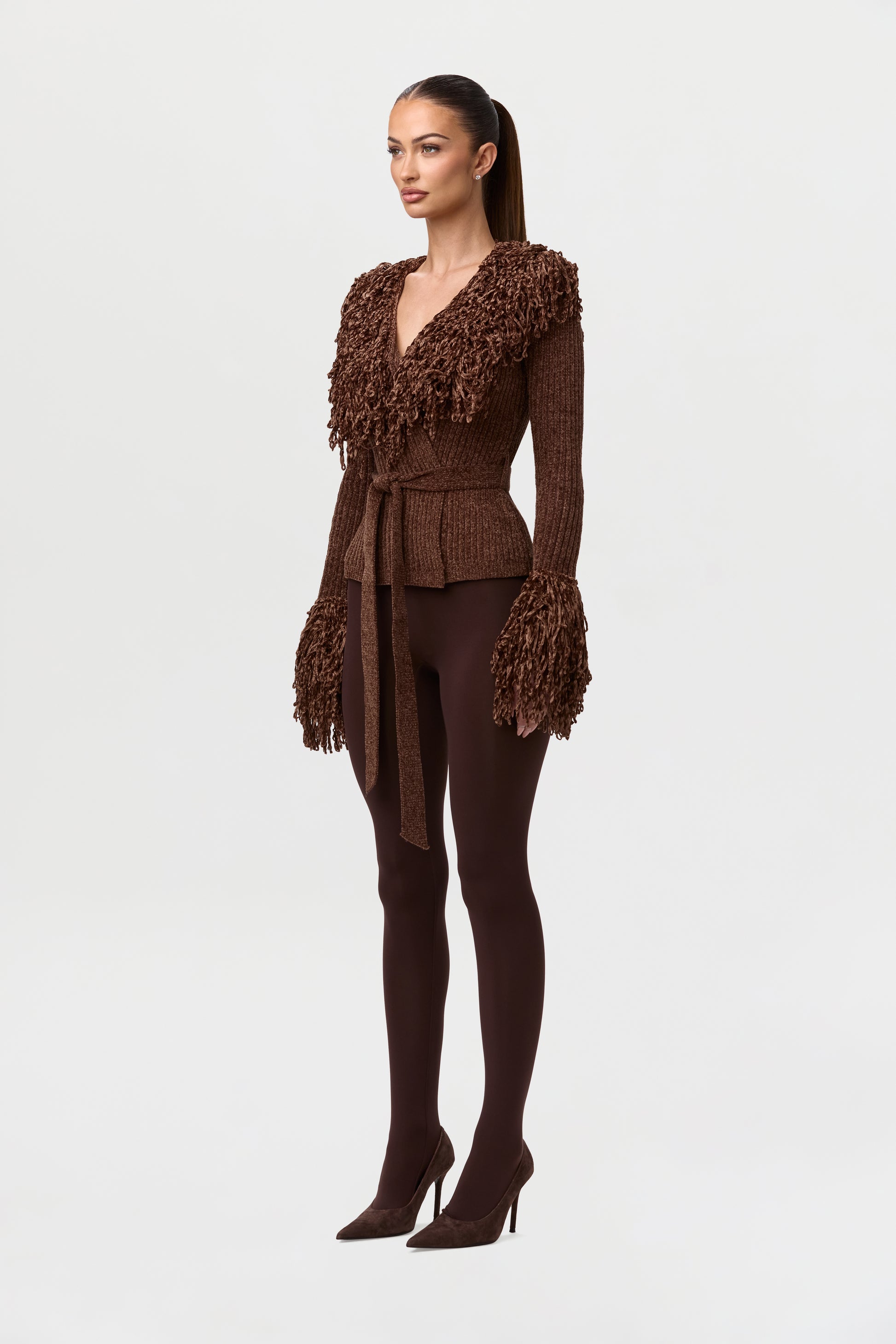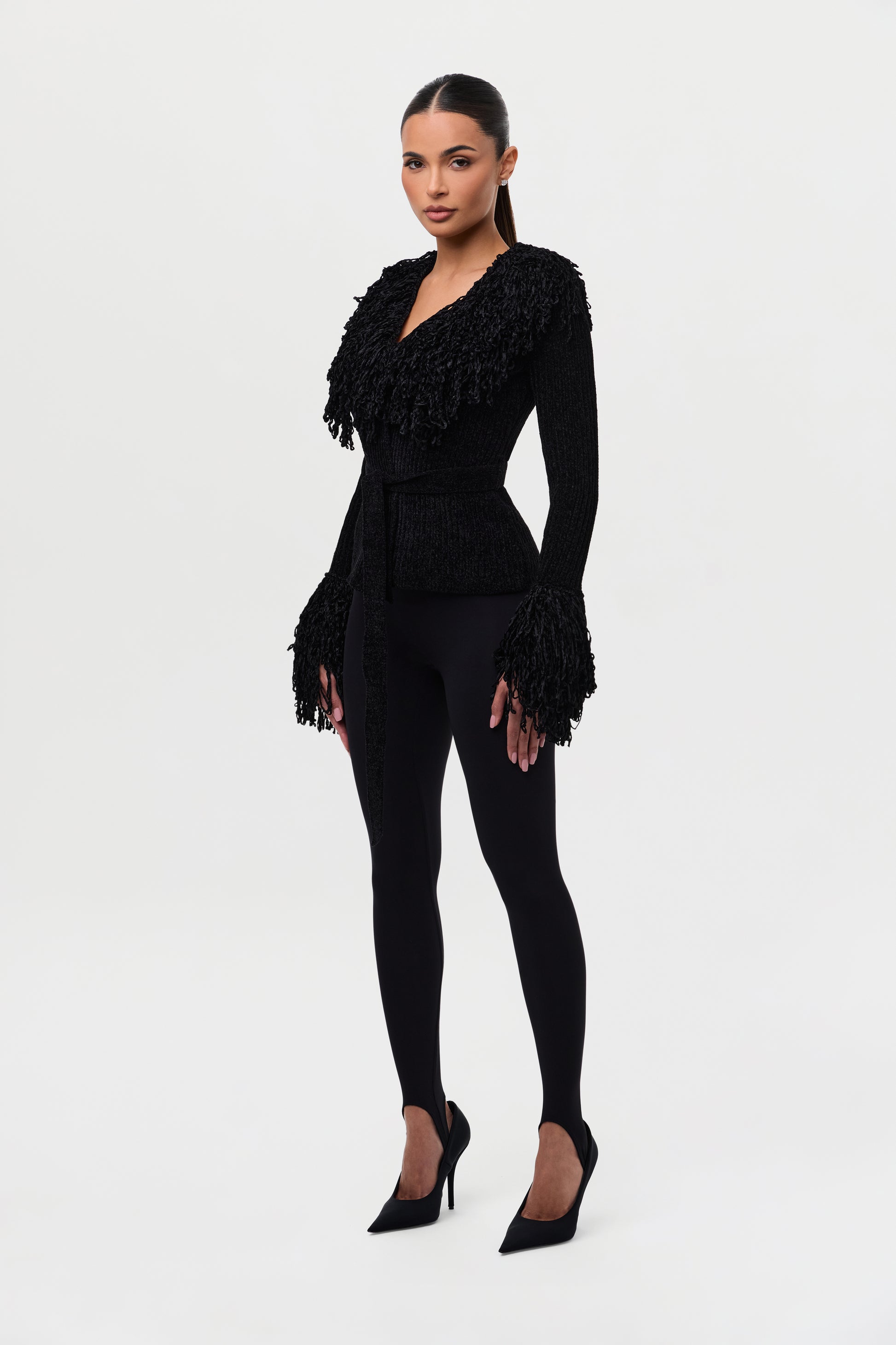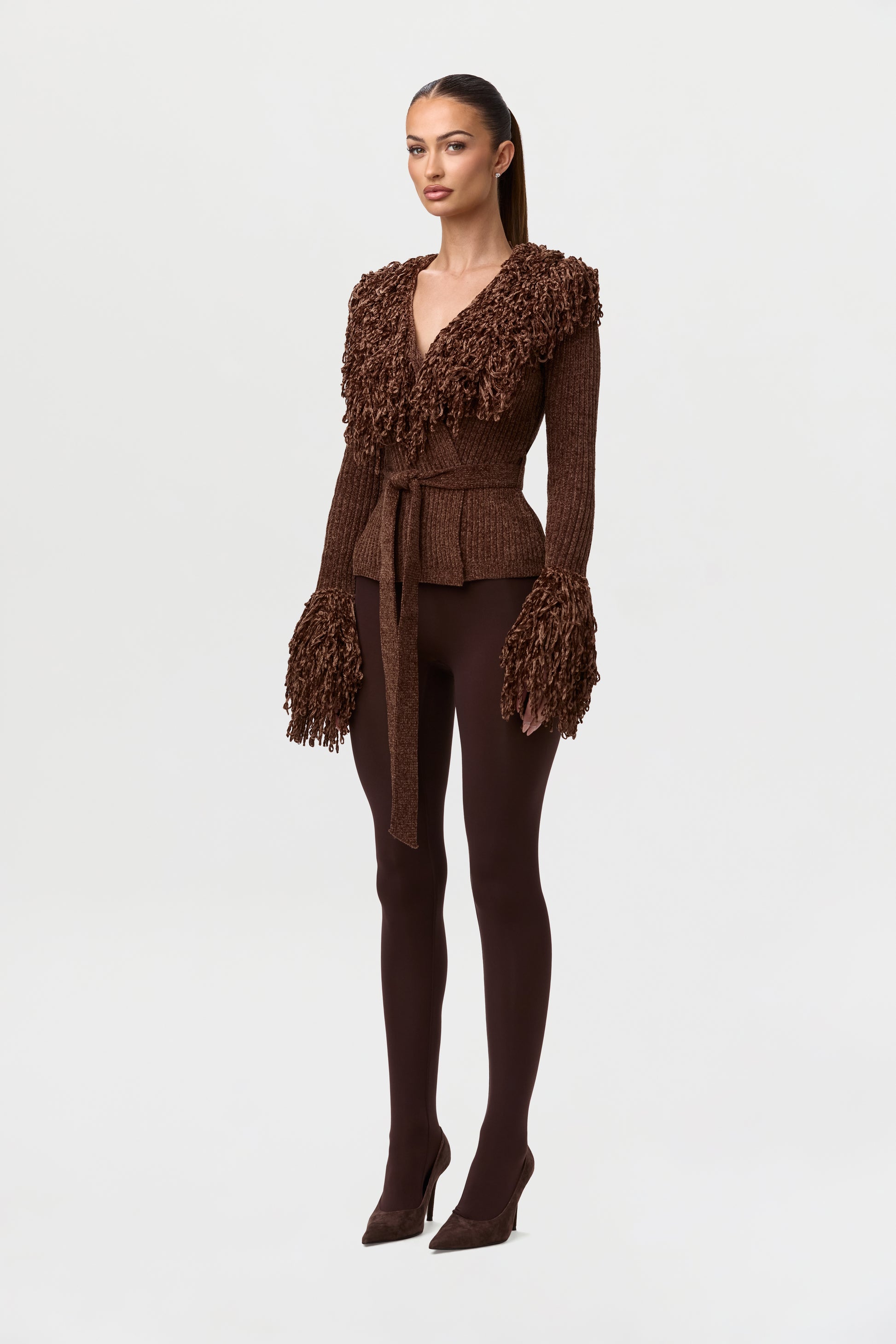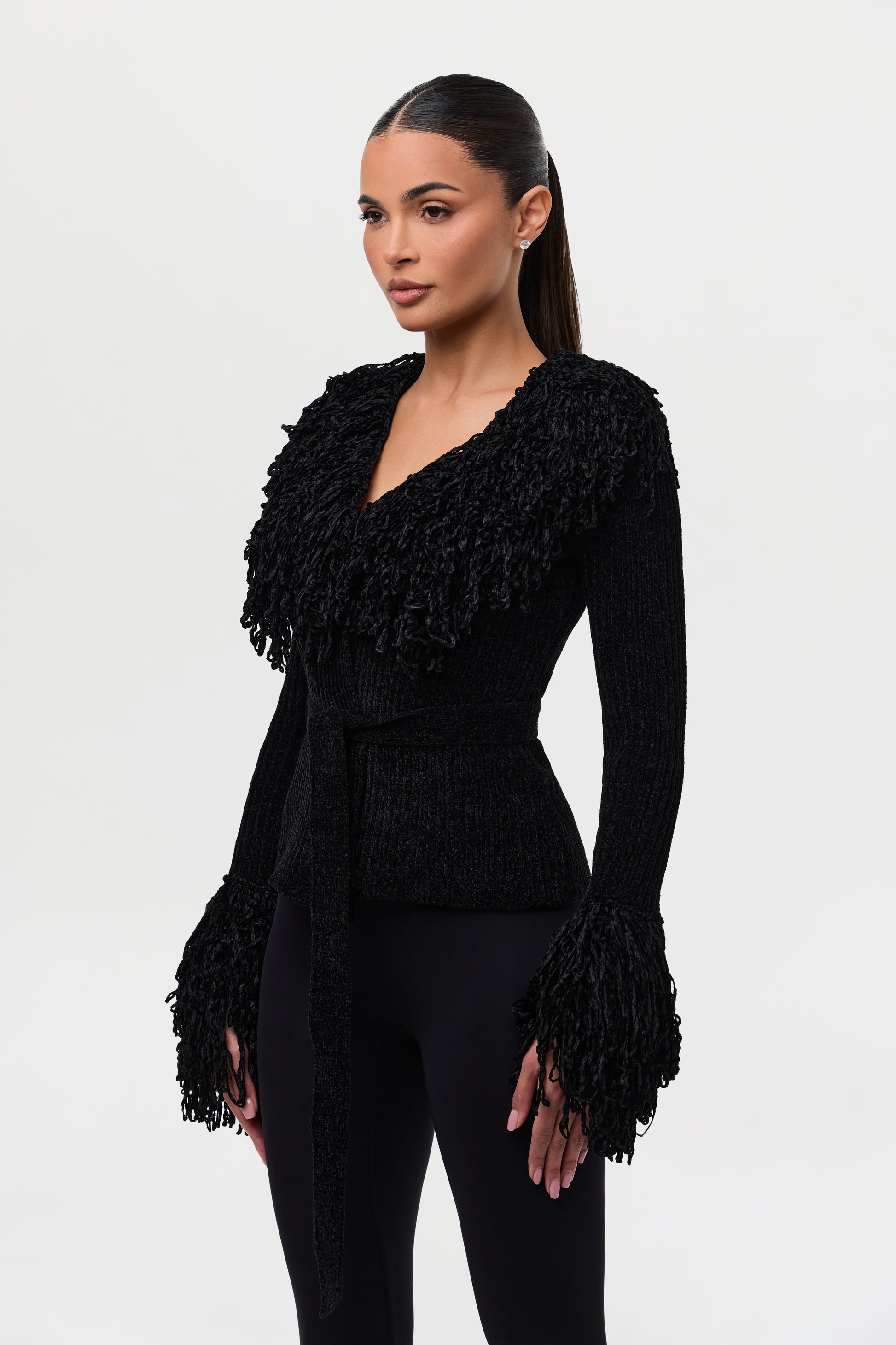 Knit Fringe V-Neck Cardigan