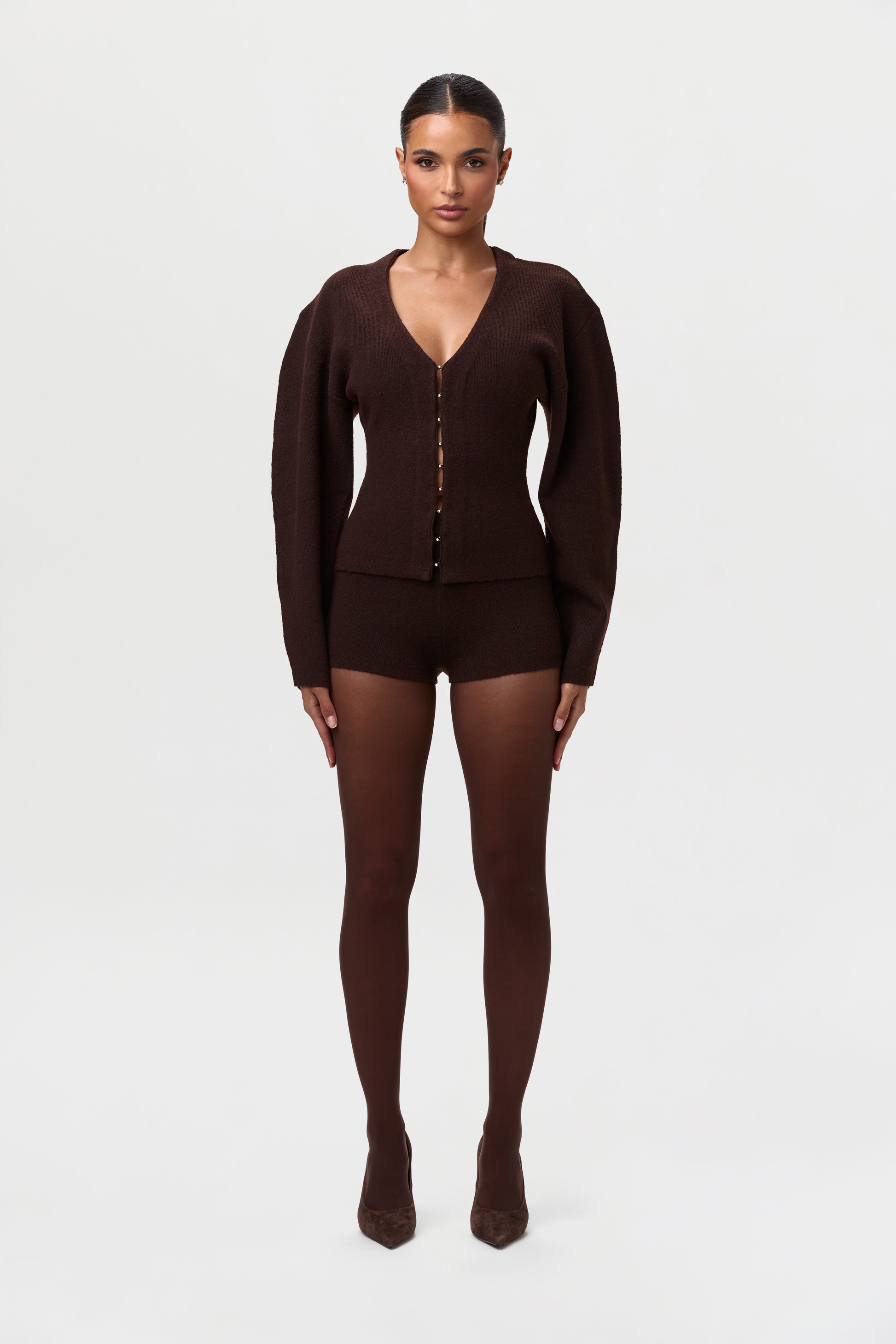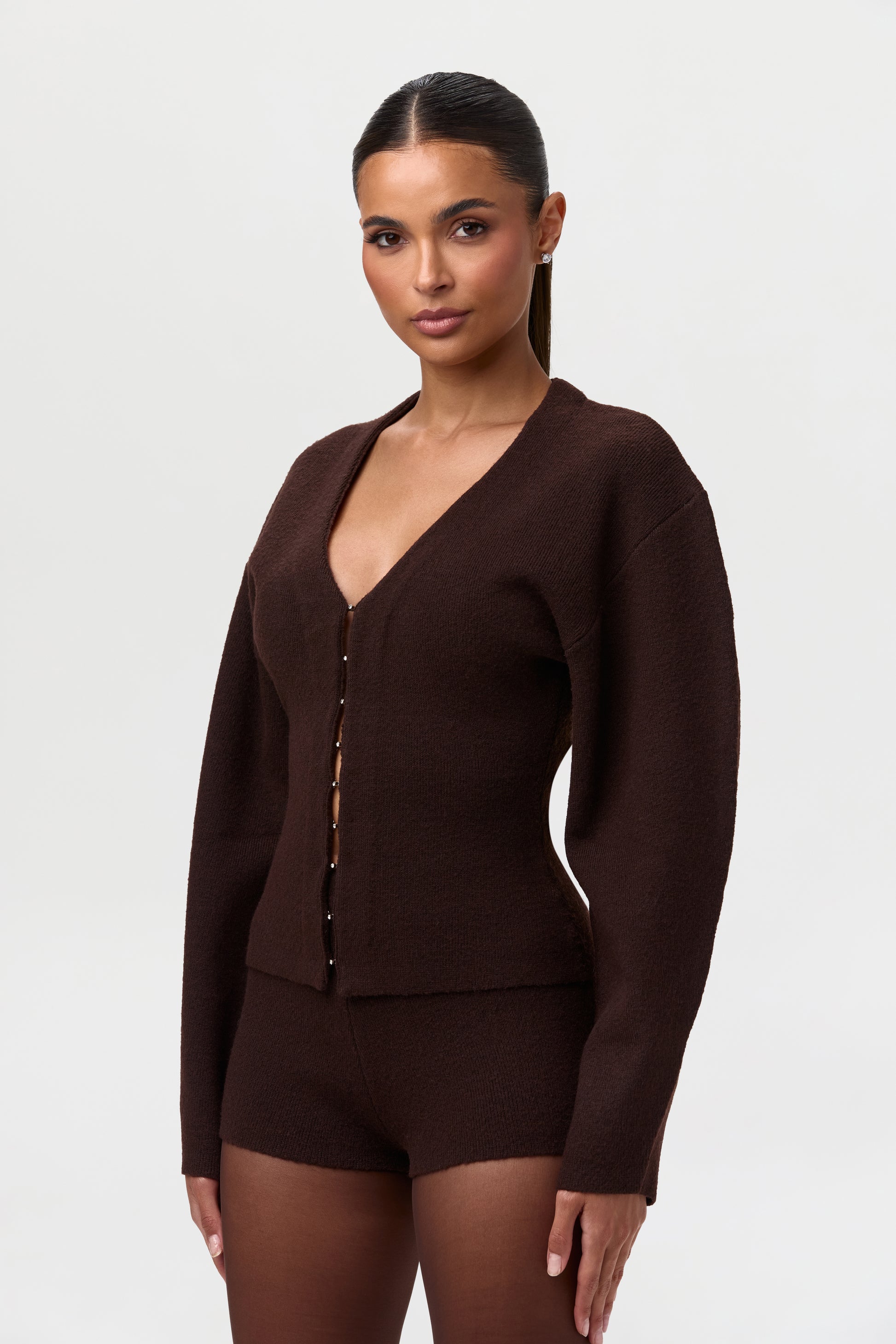 Knit V-Neck Rhinestone Cardigan