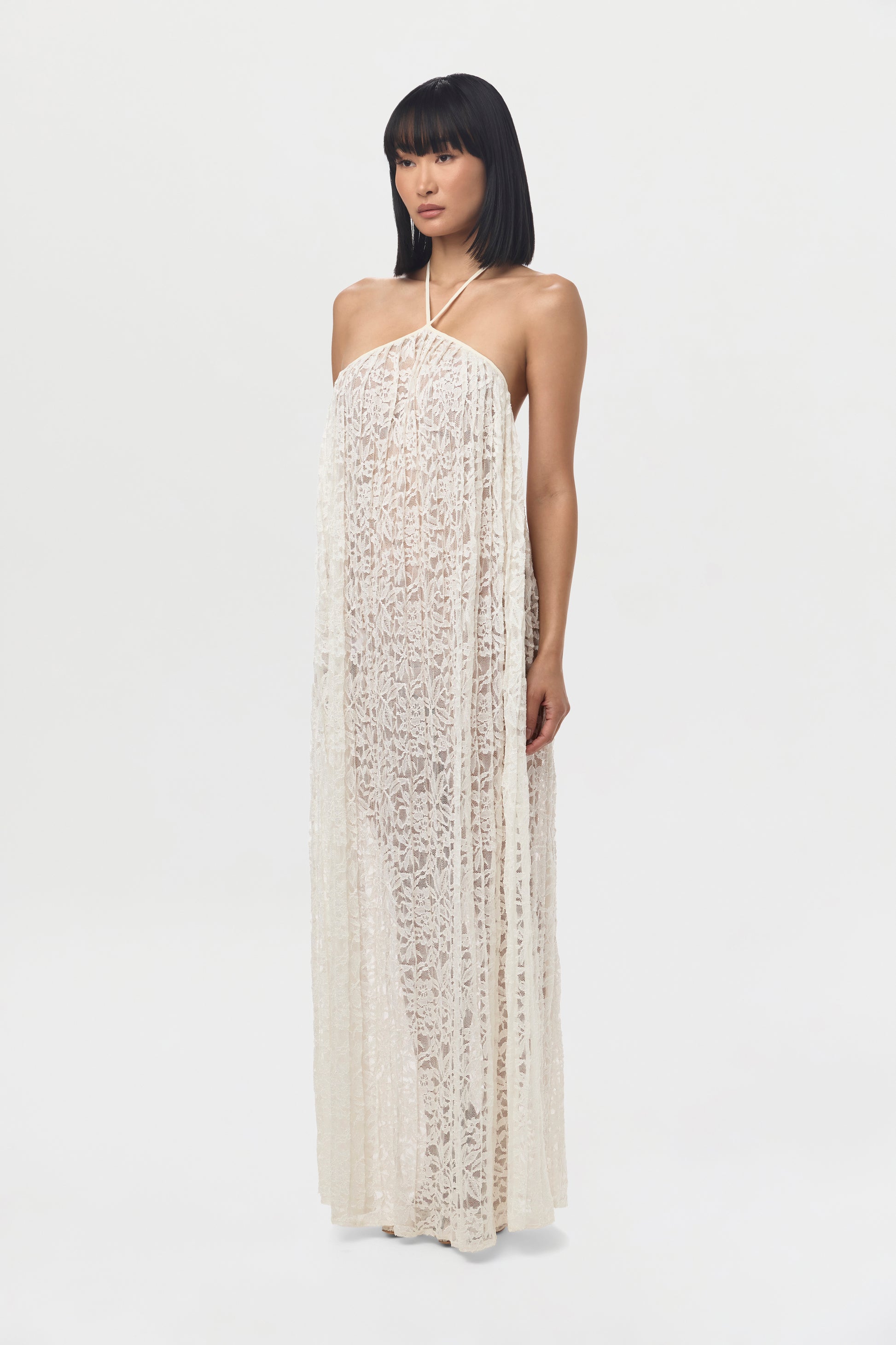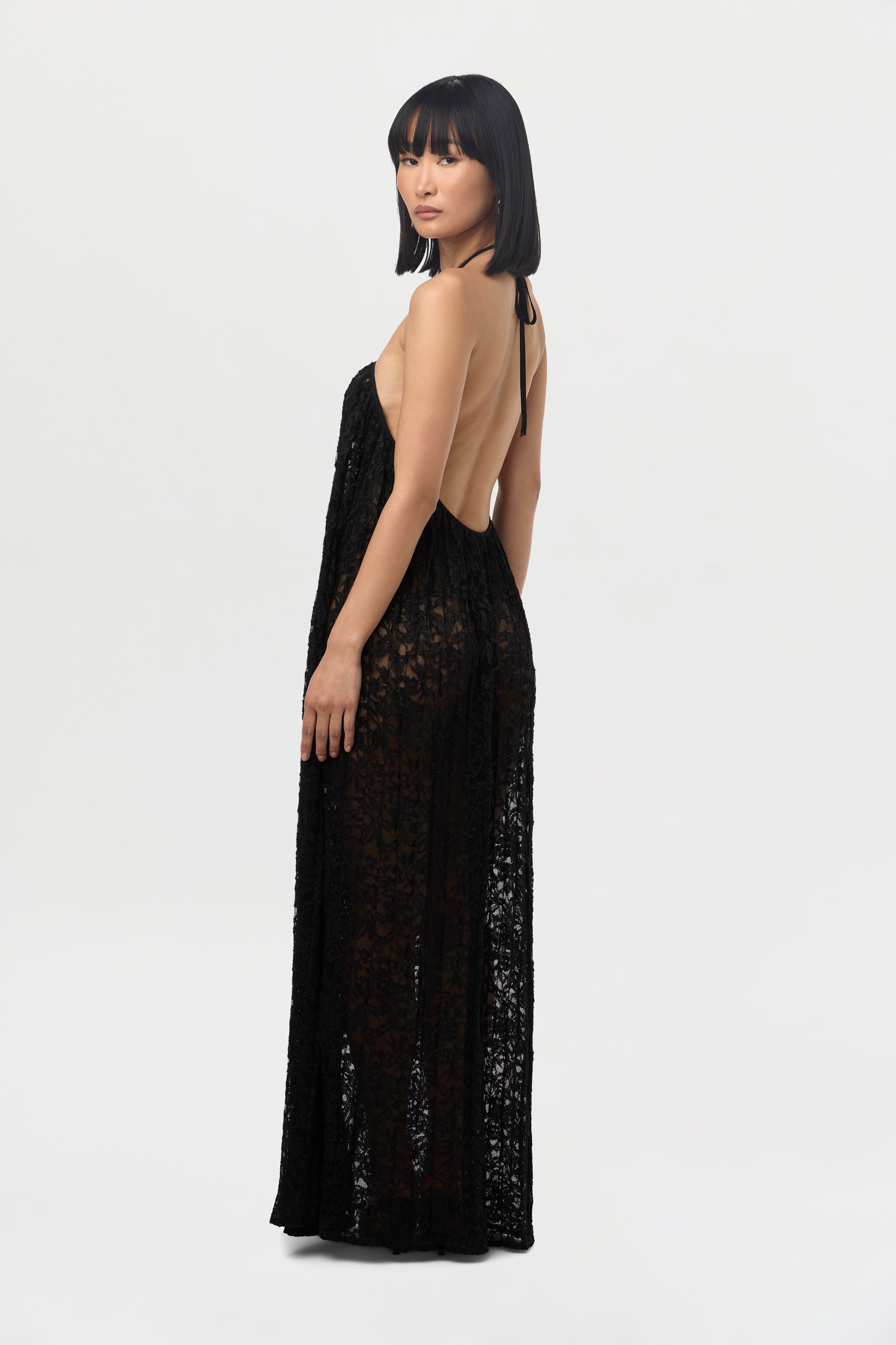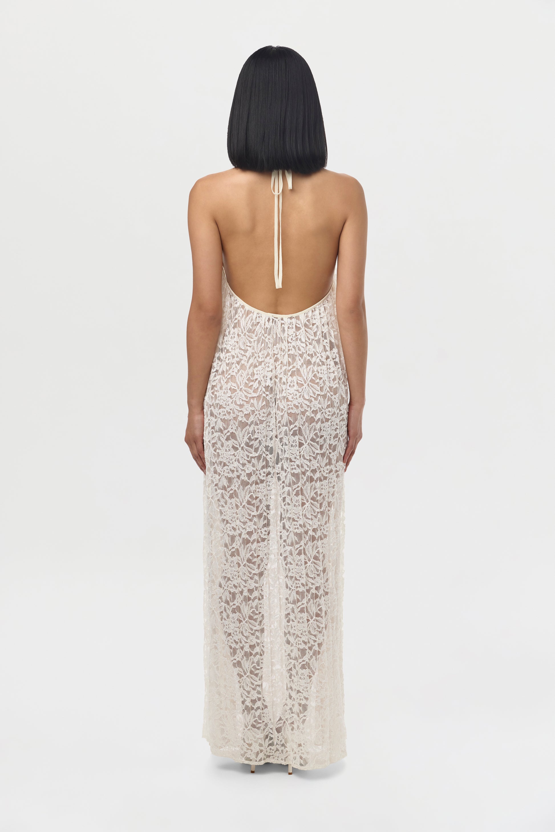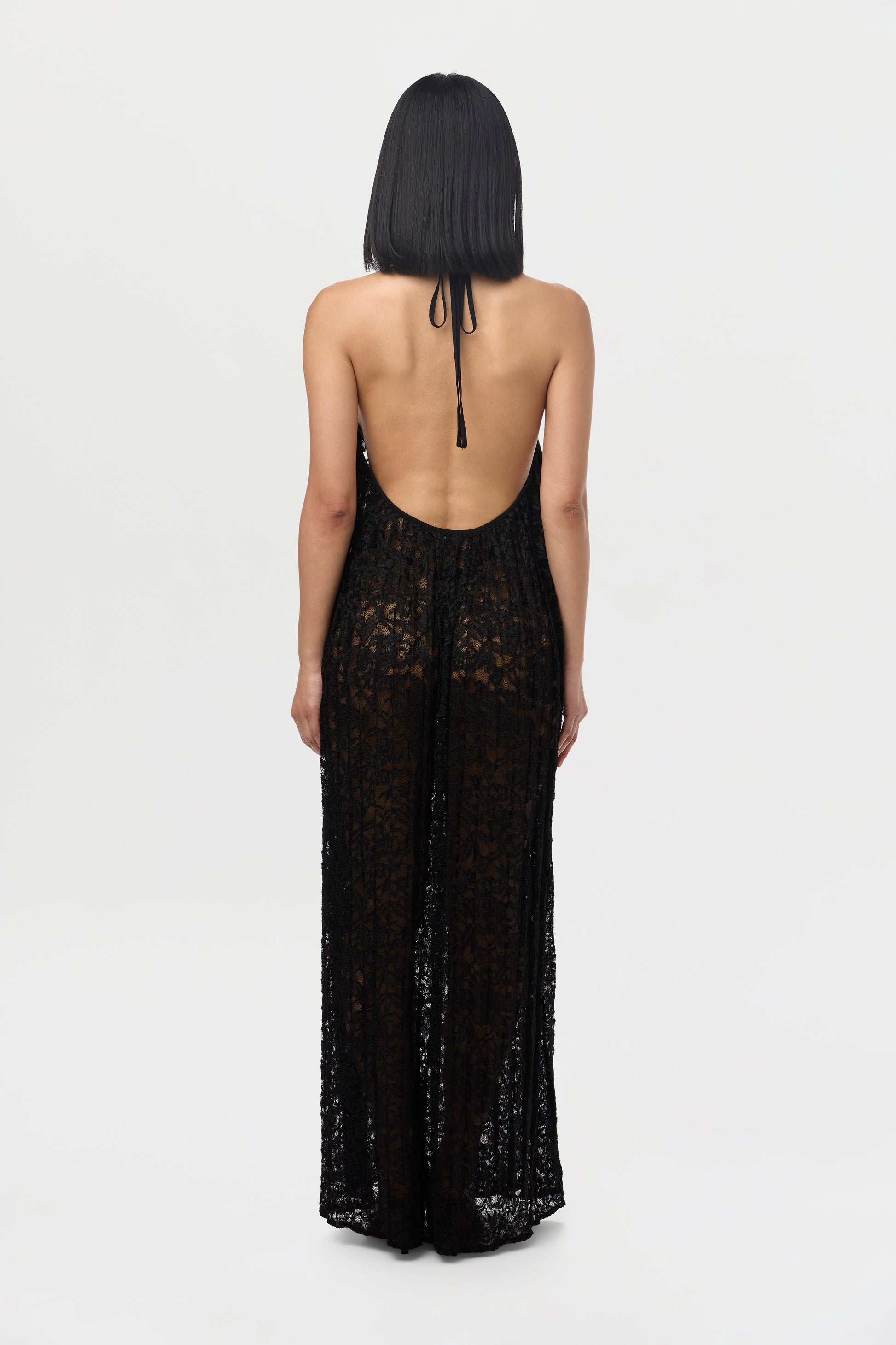 Lace Halter Open Back Dress