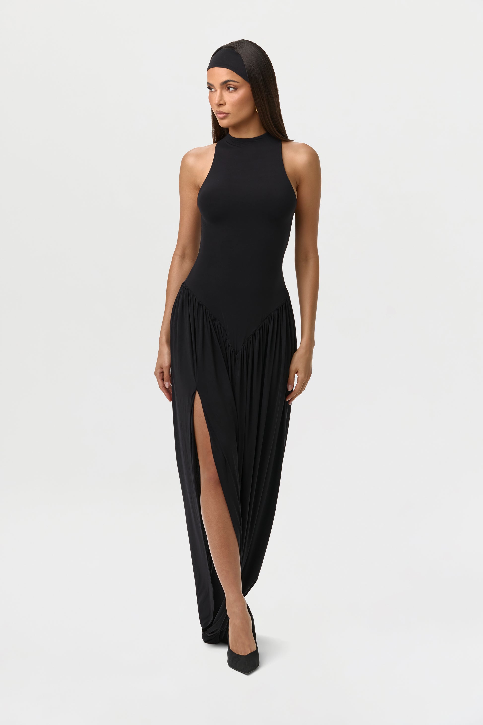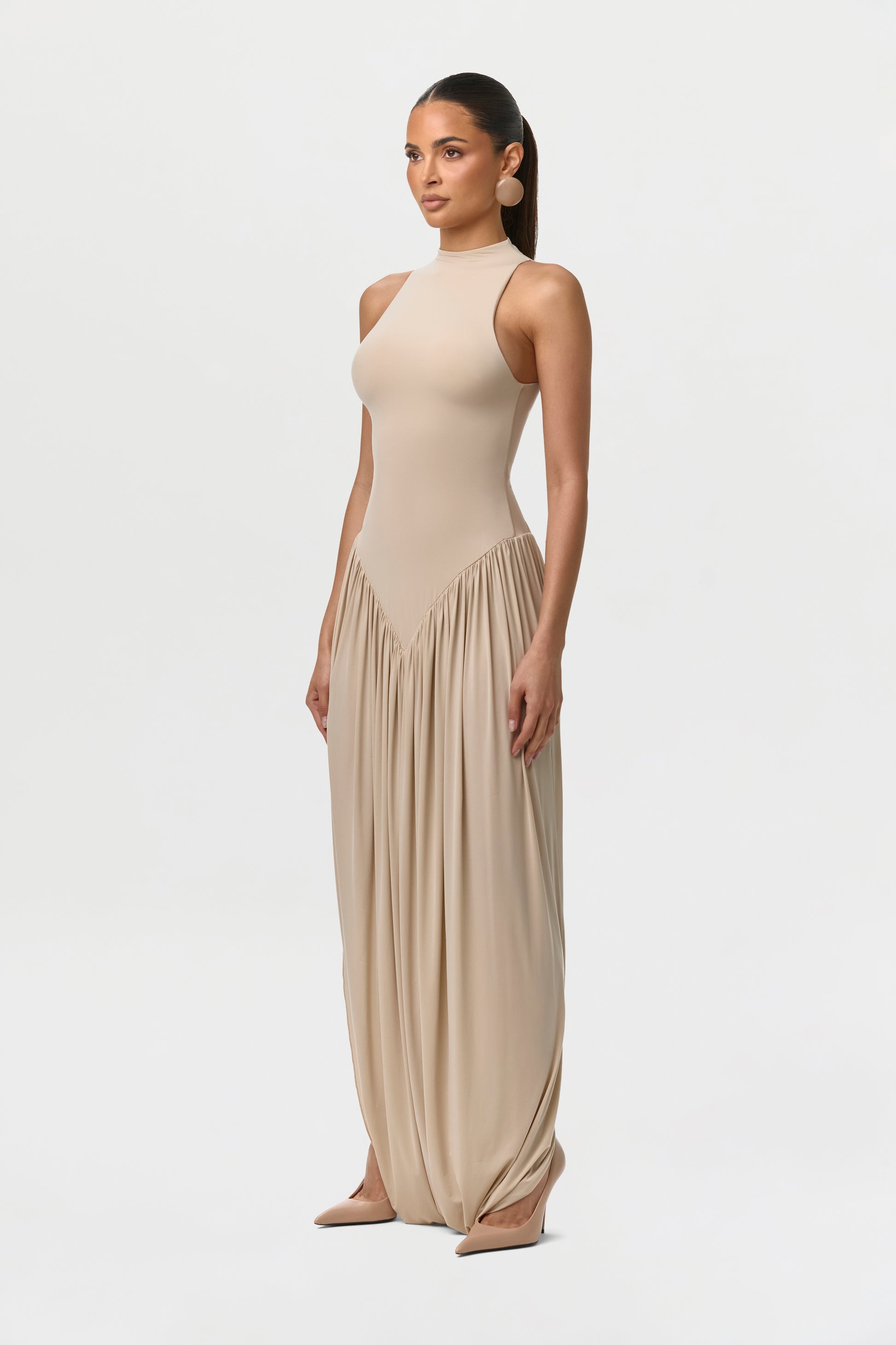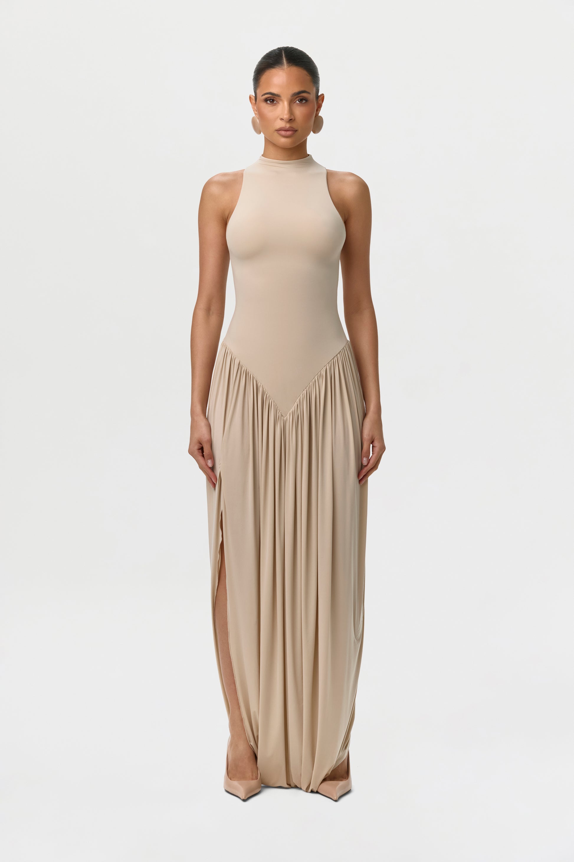 Naked Sleeveless Draped Maxi Dress