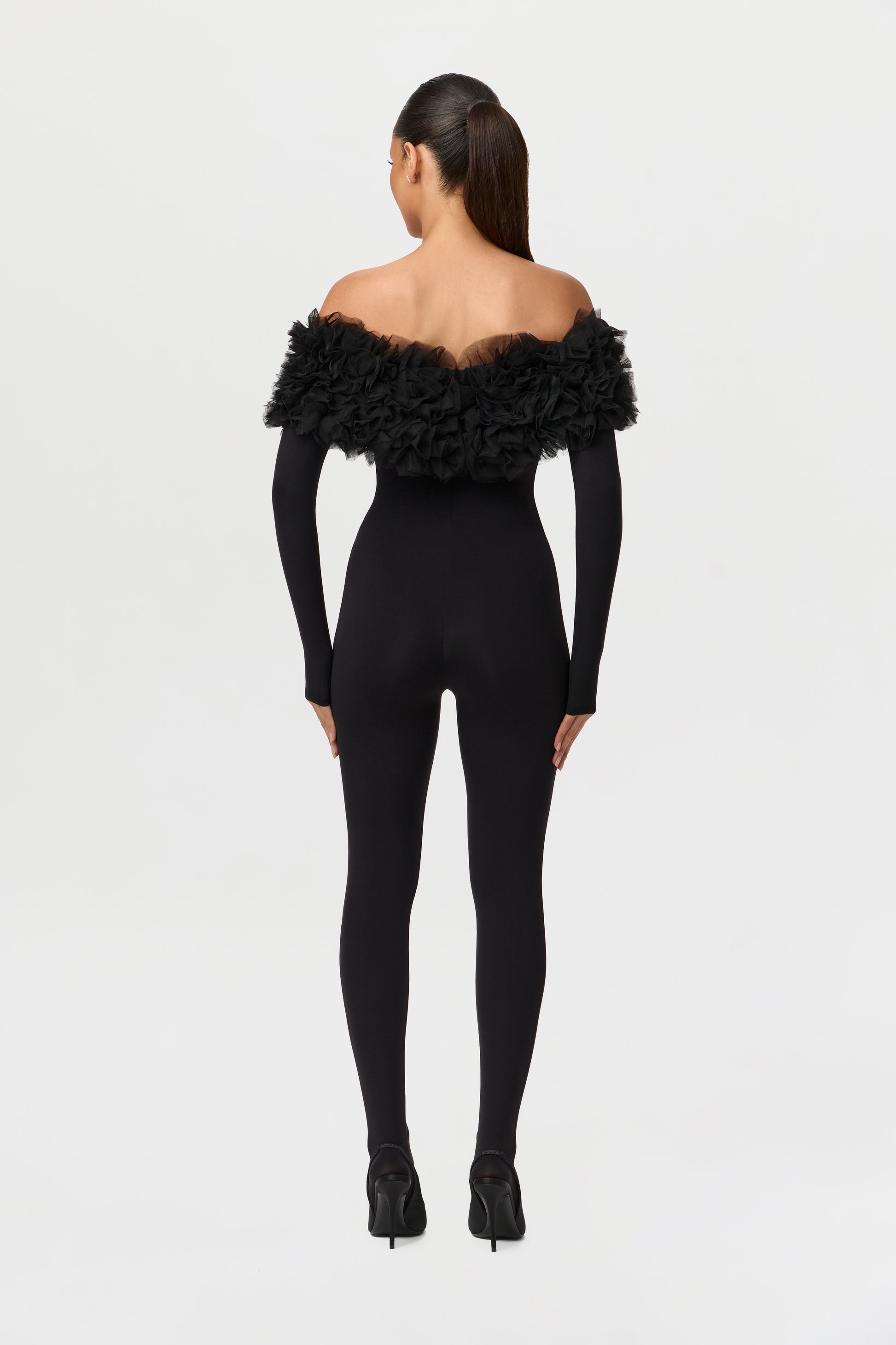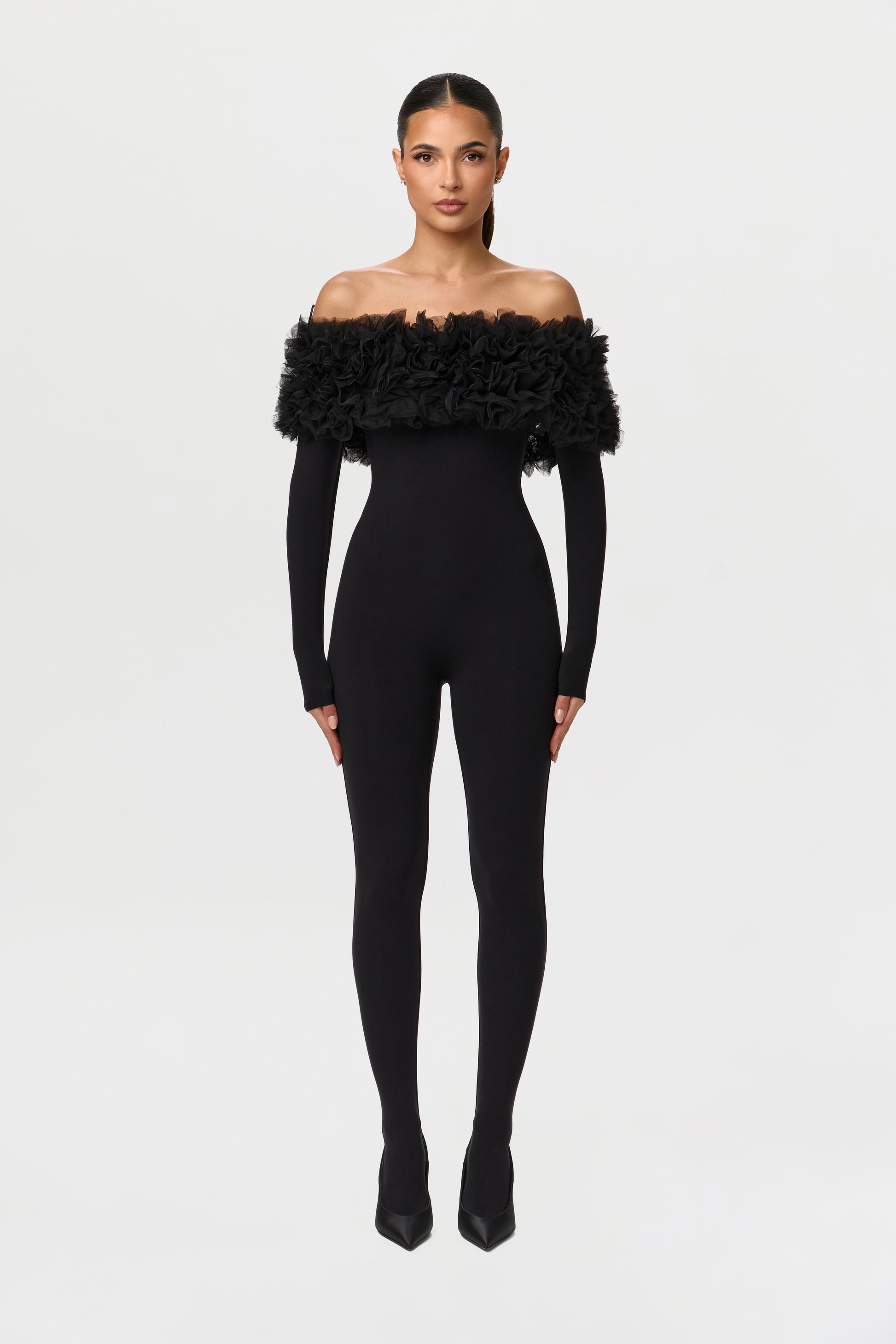Naked Off-Shoulder Roses Jumpsuit Petite