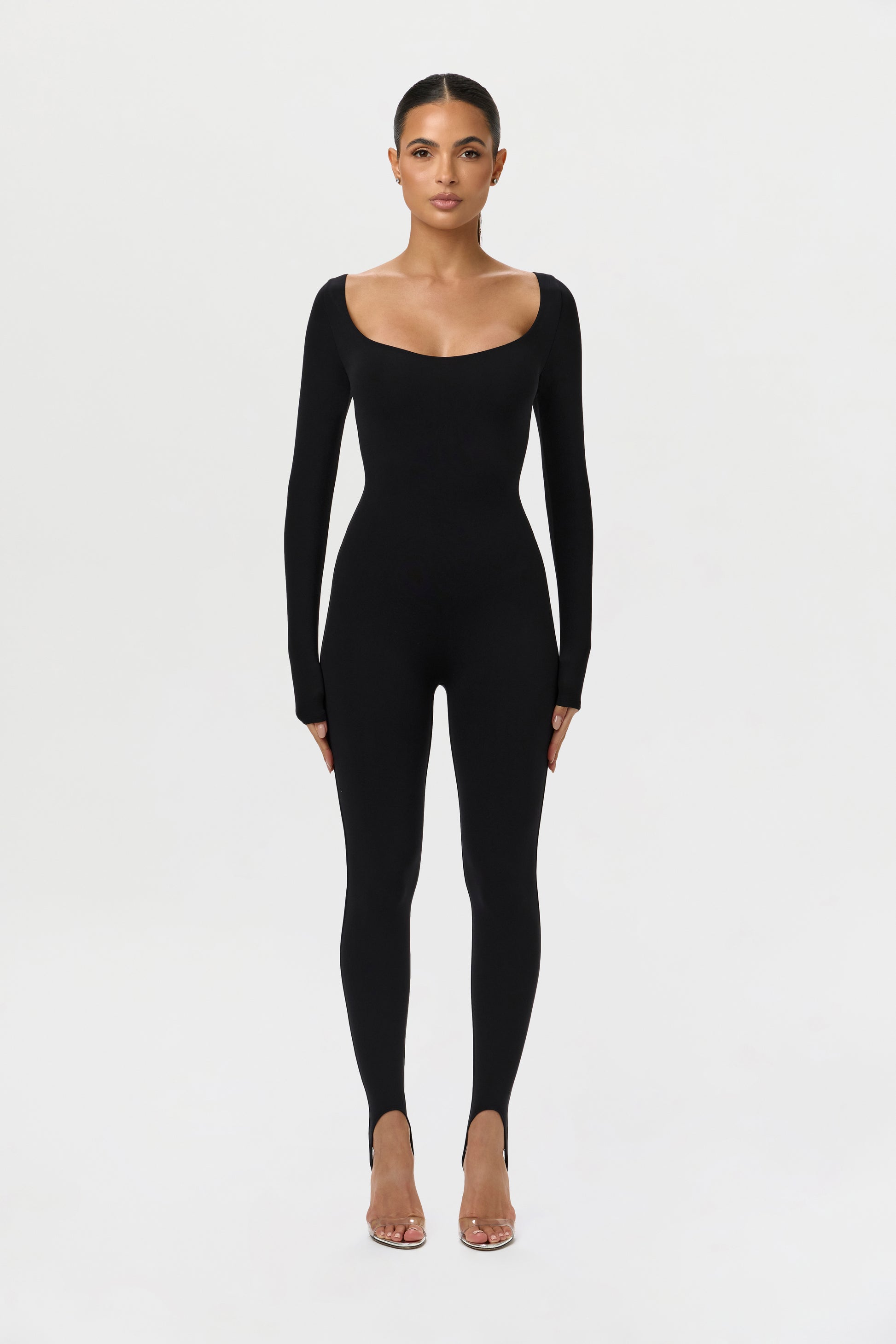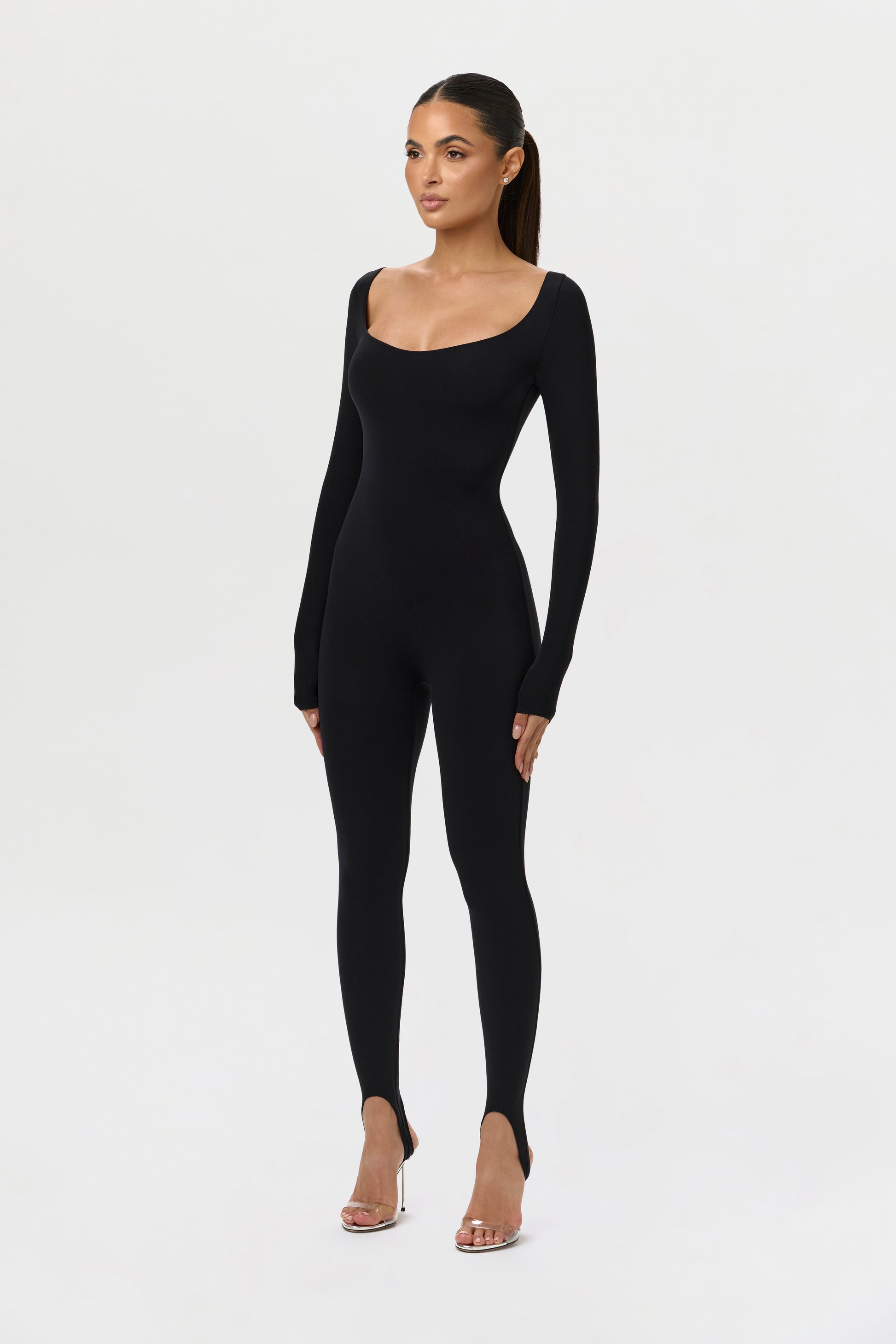 Complement your basics with our second-skin jumpsuit. Designed with a scooped neckline, long fitted sleeves, a bodycon silhouette, and a stirrup finish. Formulated with a buttery-soft fabric that feels as good as being Naked.