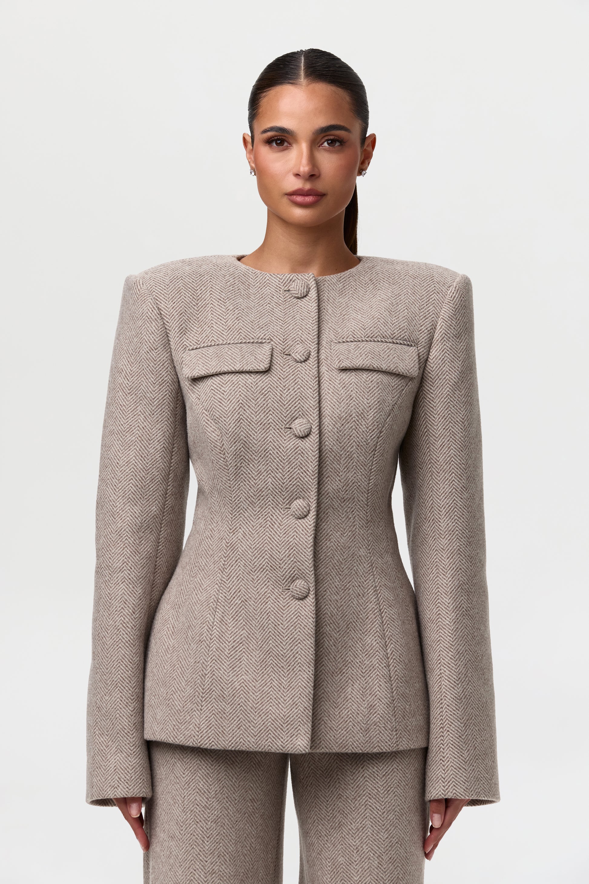 Chevron Suited Button Up Blazer