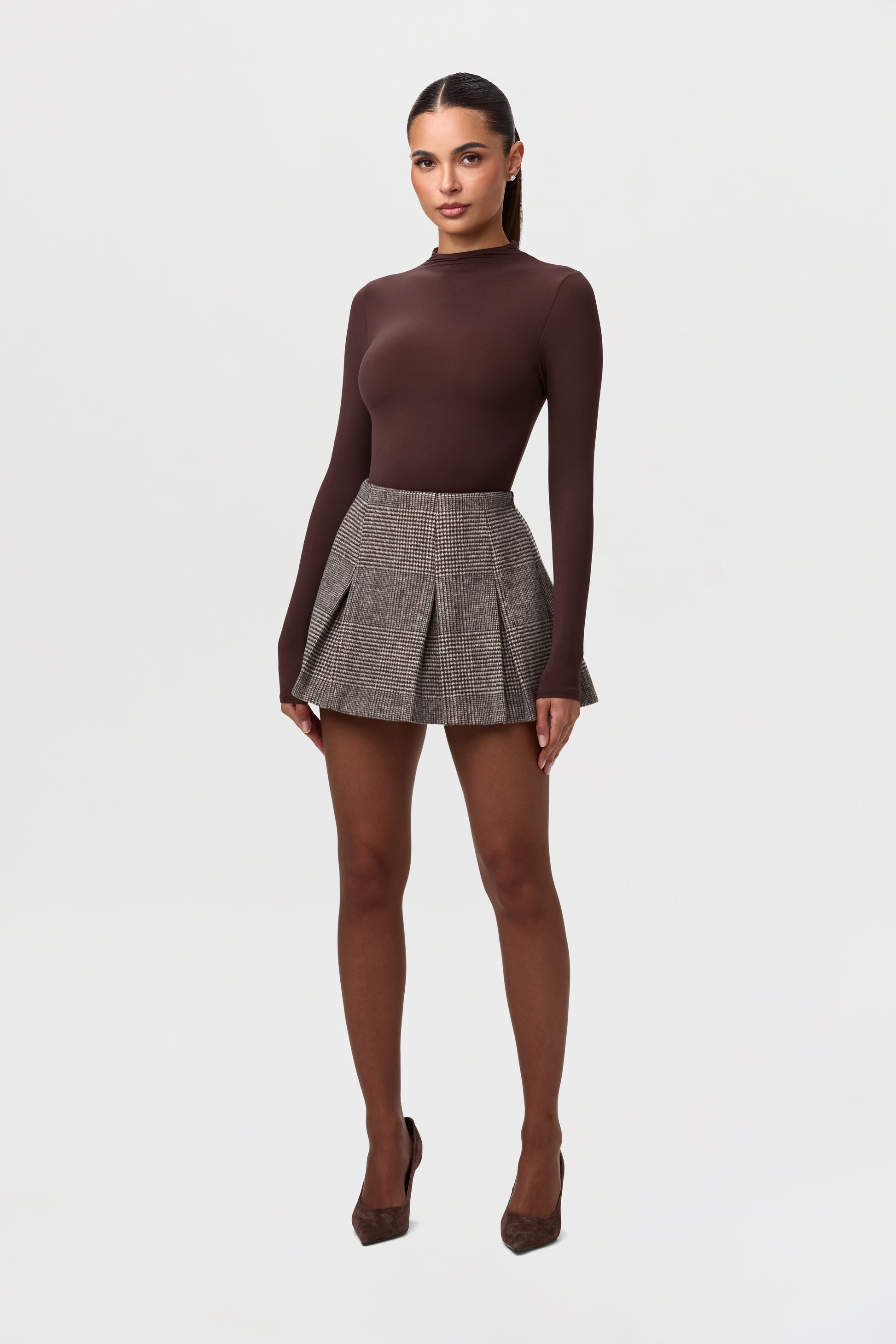 Our classic plaid and houndstooth print mini skirt is formulated with a high waist, pleated detail, side zipper closure, and inner lining for comfort. Style with our matching houndstooth blazer, bodysuits, and more.