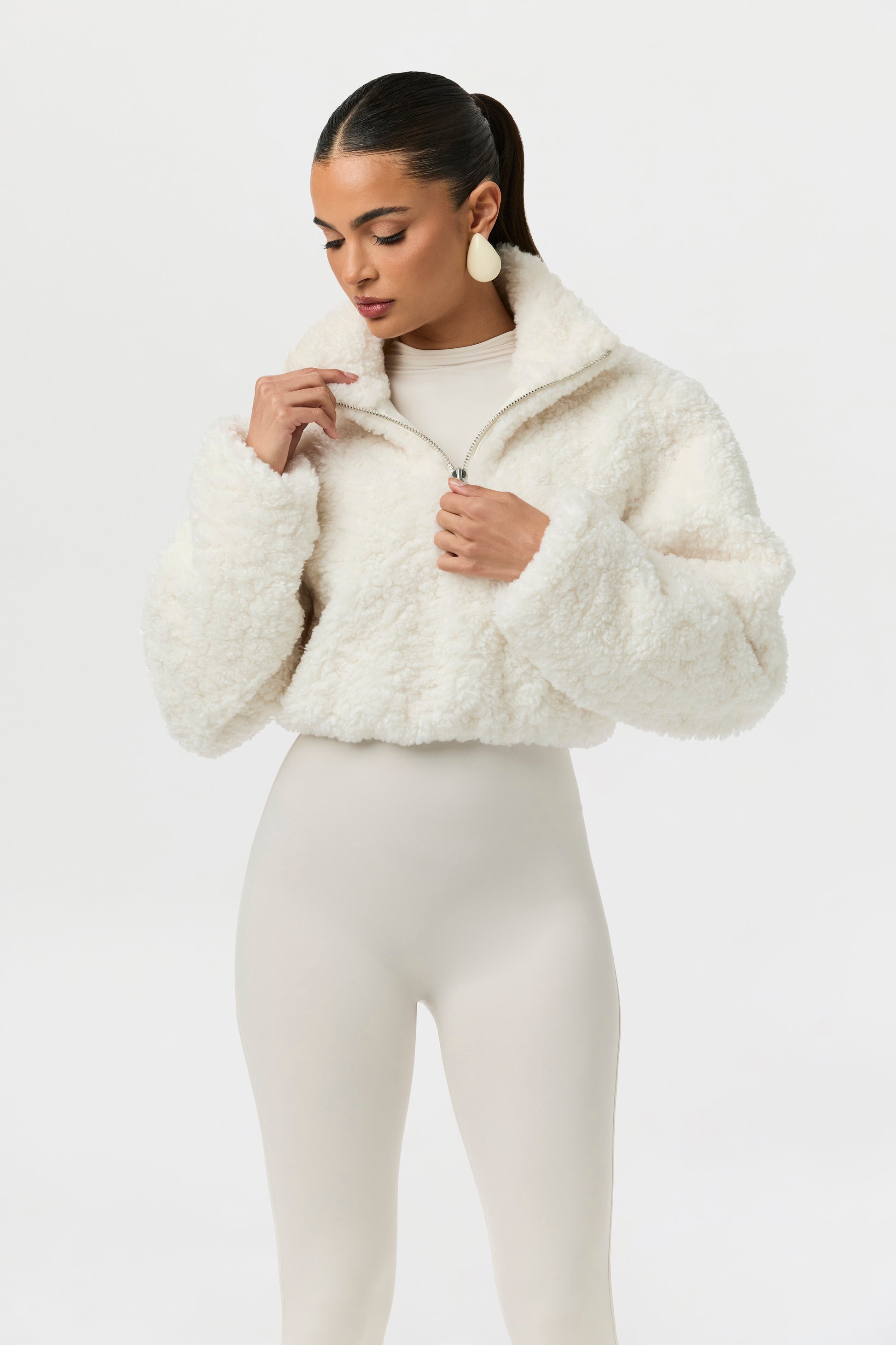 Sherpa Quarter-Zip Cropped Sweater