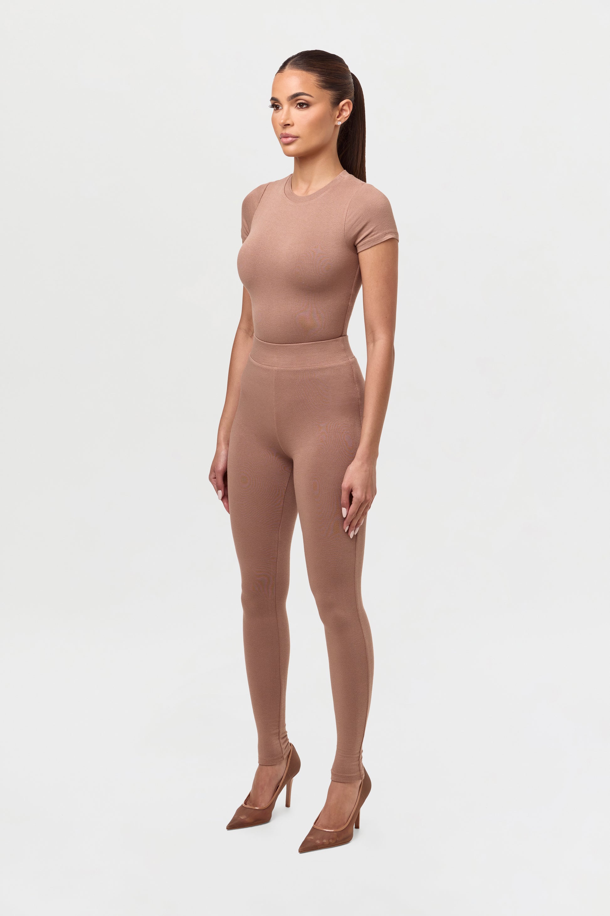 Our essential legging features a high and elasticized waistband with a bodycon design that sculpts your shape. Designed with versatility, stretch, and comfort perfect for morning, day, and night.